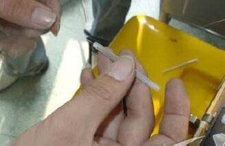 5、清洗光纖:在剝?nèi)ス饫w最里面保護套這前先裝入固定膠管。內(nèi)部玻璃光纖在熔接時必須干凈無雜,因此在熔接工作開始之前我們必須對玻璃絲進行清潔。比較普遍的方法就是用綿花沾上酒精,然后擦拭清潔每一小根光纖。